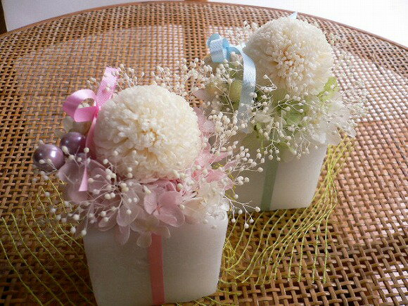結婚のお祝いに・内祝いに・お誕生日のお祝いにプリザーブドフラワー「アロママム」 /まんまるな菊 価格: 2,079円 レビュー評価: 5.0 レビュー数:7 サイズ(cm)ベースの一辺は6cm 高さ約10cmサイズ(S/M/L)S使用花材マム あじさい かすみそう(以上、プリザーブドフラワー)パール リボン「お花の色」(カラー)ピンクとブループリザーブドフラワー「アロママム」まんまるマム(菊)のプリザーブドが、和みの時間をお届けします。 お水かえの心配がないプリザーブドフラワー。寒い冬でもお水が凍ることがなく、寒冷地でもお花を楽しんで頂けます。天然のお花の香りを練り込んだ「アロマベース」という珍しい器にアレンジ。ガラスでもなく、陶器でもない独特のその透明感と風合いは優しく上品です。お花は、ころんと、まんまるなマム。そう、菊です。まんまるなマムが、ど Supported by 楽天ウェブサービス |